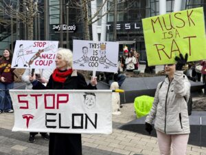 BOSTON (AP) — Demonstrators gathered outside Tesla stores across the U.S. Saturday to protest the automaker’s billionaire CEO, Elon Musk, and his push to slash…