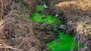 Hillsborough officials are addressing a vivid green hue in the local creek caused by a 50-gallon cleaning product leak from a nearby business. Concerns over…