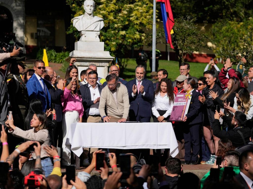 BOGOTA, Colombia (AP) — Colombian President Gustavo Petro signed into law on Wednesday a controversial labor overhaul with the potential to profoundly shift the balance of power from employers to workers, a key victory for the left-wing leader even as Congress compelled him to scale back his more radical ambitions.