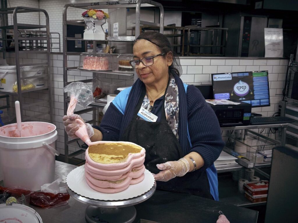 NEW YORK (AP) — Inside a Walmart store in New Jersey, a worker puts the finishing touches on a cake with an edible ink Sponge Bob on top. A colleague creates a buttercream rosette border for a different cake, while another co-worker frosts a tier of what will be a triple-deck dessert.